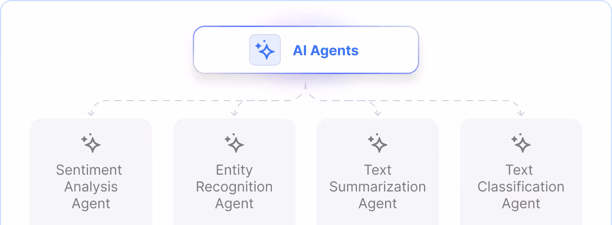 Deploy intelligent agents for document extraction, text classification, and data enrichment, or build any custom AI agents for your workflows.