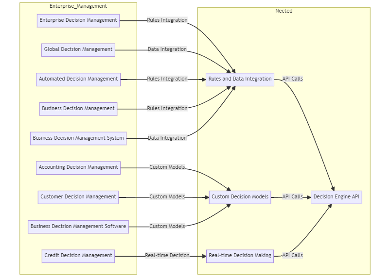 Feedback loops and integration: The feedback loops are established to monitor the continuous change made in the decision-making process. So the outcome of the decision can be adjusted accordingly. Nected not only helps to set up the feedback loops of the decision management system but also helps in integrating other enterprise software such as enterprise resource planning (ERP) and customer relationship management (CRM) to ensure that data is shared across multiple organizations, supporting informed decision-making processes.