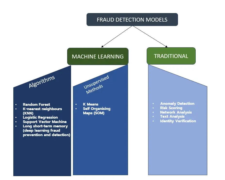 As we progress in this blog, let's delve into understanding the primary player in modern fraud detection landscape: fraud detection machine Learning model. But, first we should see the image below which provides an overview of fraud detection models, categorized into two groups — Machine Learning and Traditional.