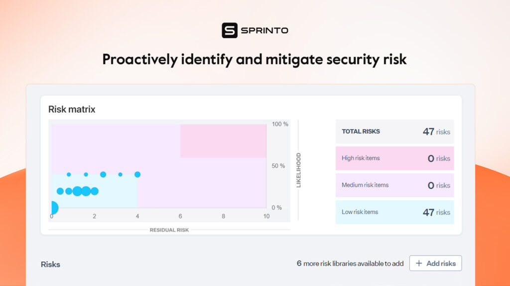 Sprinto is a cloud-based compliance automation and operational risk management tool. It helps teams map risks to controls and keep the whole thing visible. That’s useful when risk reviews start piling up and nobody wants another spreadsheet.