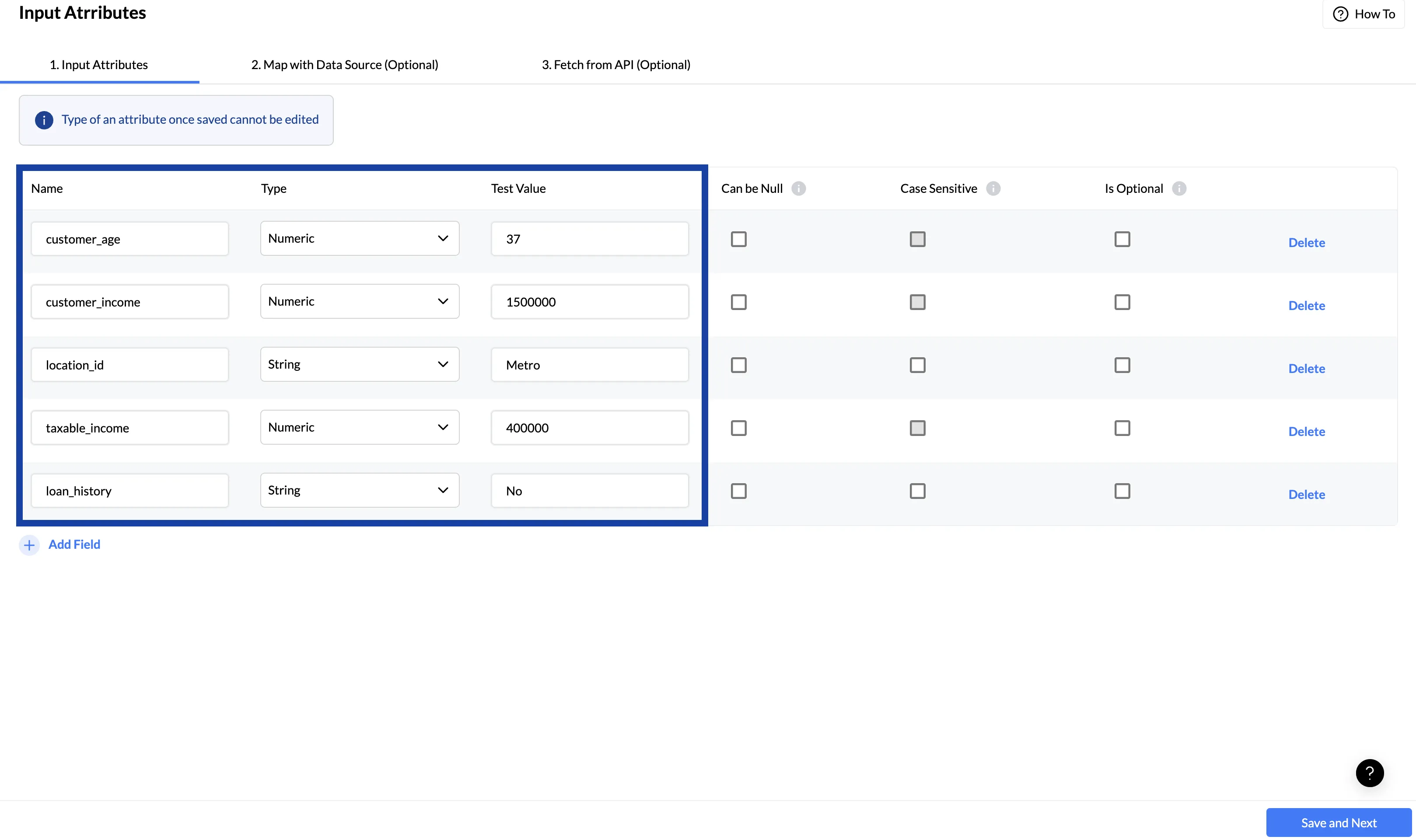 In Nected AI's automated credit scoring tool, users have the flexibility to create customized scoring mechanisms by defining attributes and parameters tailored to their specific needs. Here are some key parameters that can be utilized:
