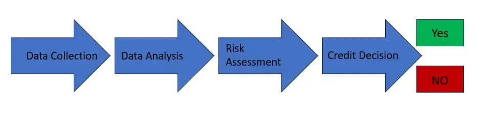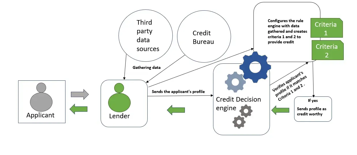 The above is a simple flow of a credit decision in logical order. This basic flow can be considered as the underlying algorithm of credit decision engines.