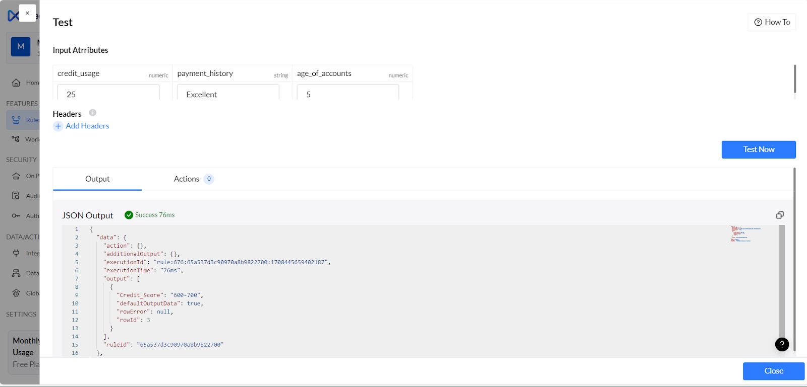Test the credit scoring model within Nected to validate its accuracy and reliability. Ensure that the model aligns with the expected outcomes, such as predicting creditworthiness accurately and providing actionable insights for small businesses.