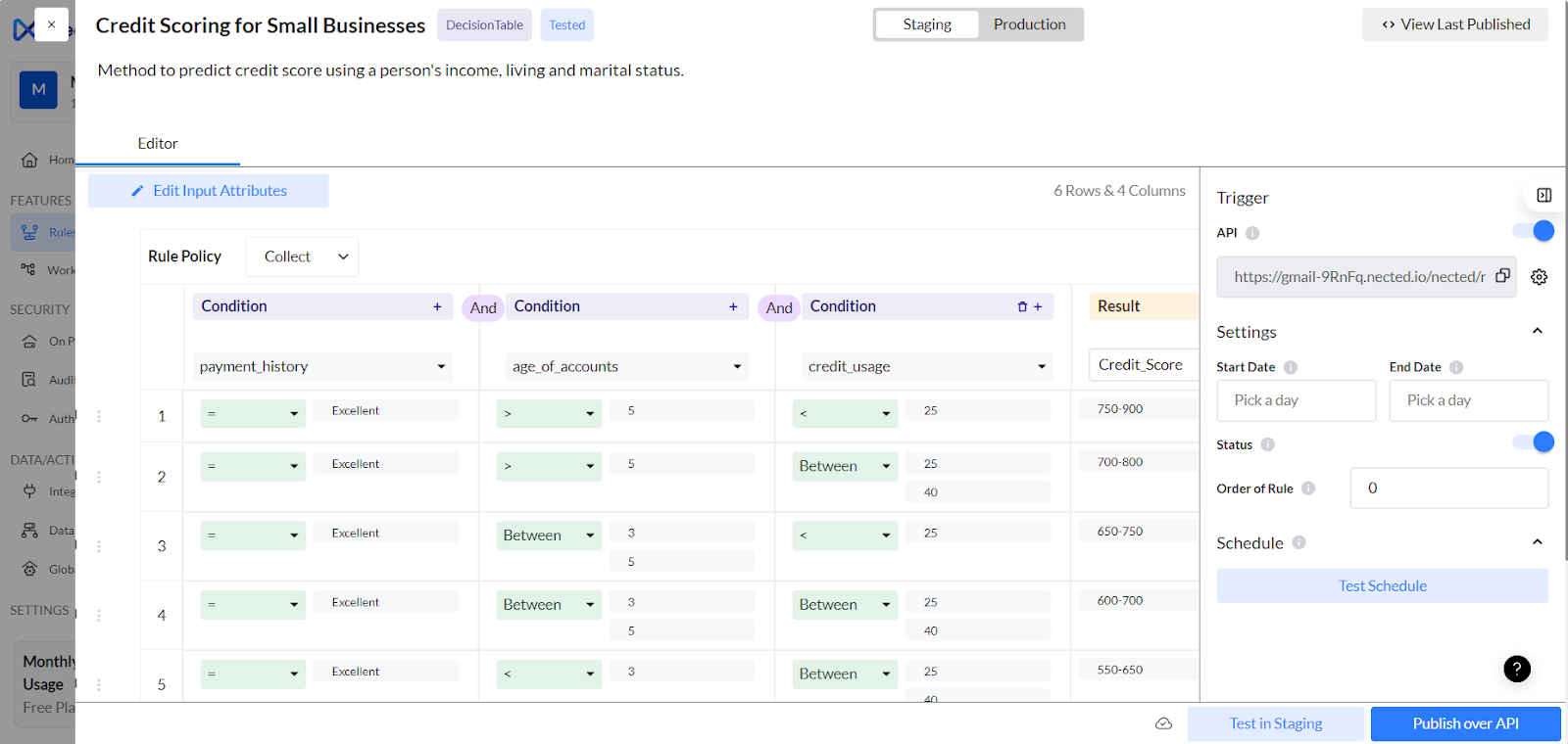 By leveraging Nected's rule-based approach, you can create customized credit scoring models that are tailored to the needs of small businesses.