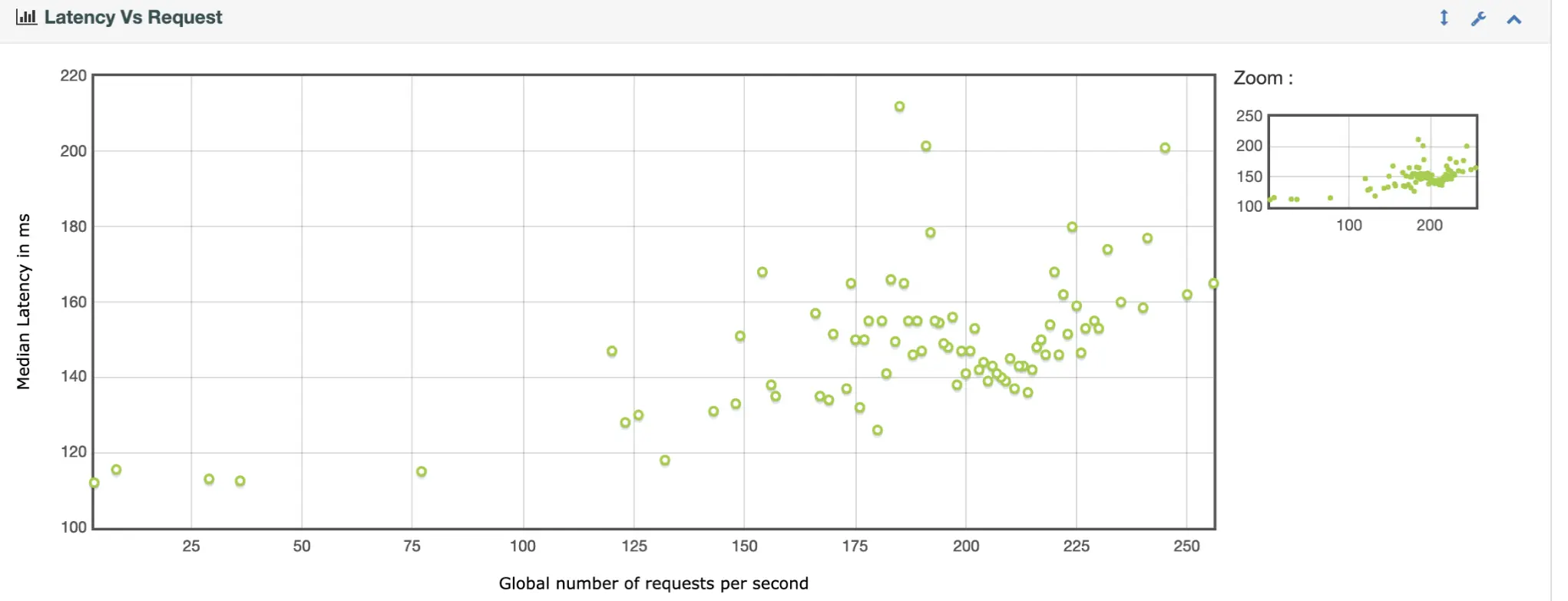- Analysis: The cluster reached its limit during this test, as the increasing load did not prompt further scaling of services, and the Cassandra cluster experienced significant latency.